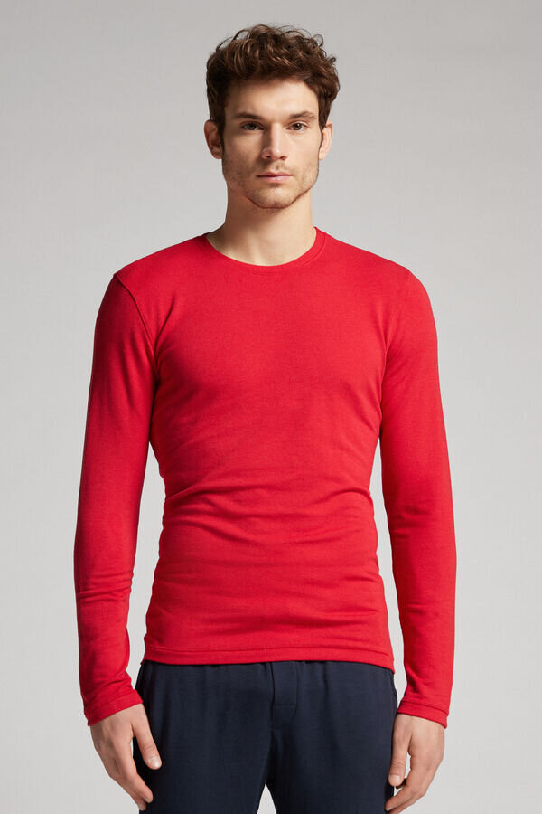 men’s long-sleeve round-neck top in a modal-cashmere blend. incredibly soft and comfortable. the model is 185 cm tall and wears size l. sold in intimissimi man stores.