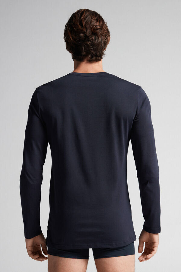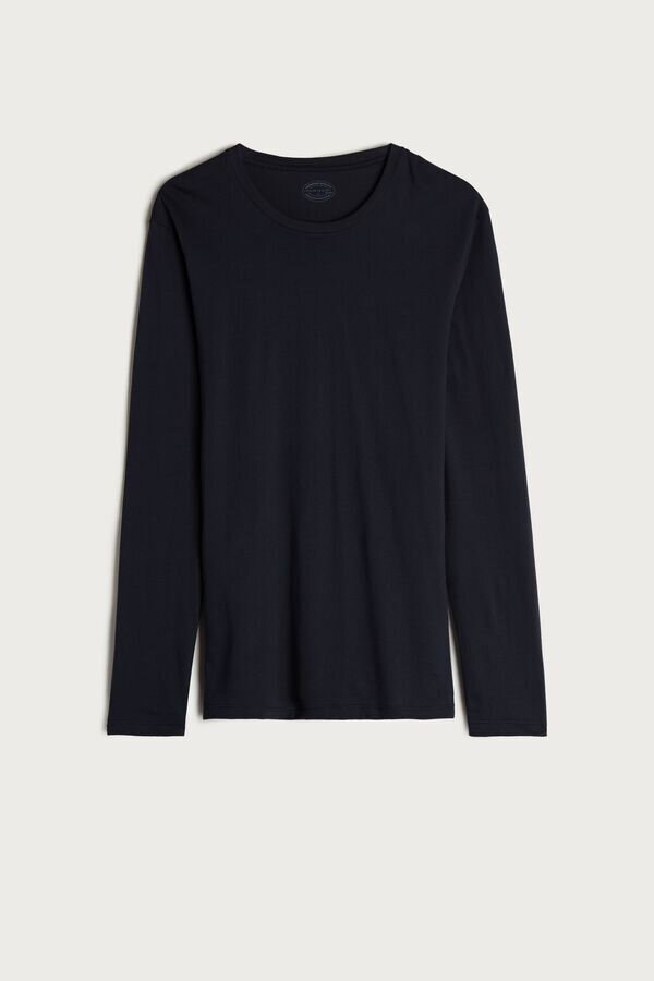 long sleeve crewneck top in 100% superior cotton. the fiber of the highest quality, incredibly soft and breathable, it features optimal elasticity even though it is free of elastane. the structure of the fabric guarantees excellent durability from washing. a simple and cozy top, ideal to wear on any occasion, either as an undergarment or on its own.