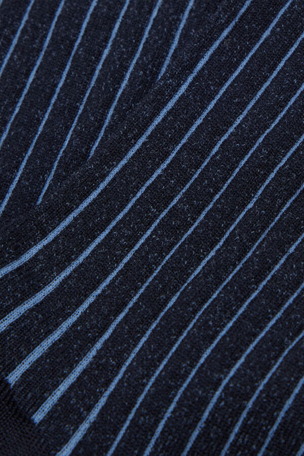 crew socks made from ribbed mercerized lisle cotton with a blue vertical stripe effect. especially light, breathable and fresh yarn. classic sock style.