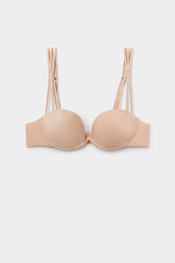 ilenia balconette bra with cups and deep neckline created to highlight the bust and the décolleté. sensual shoulder strap detail with three straps.