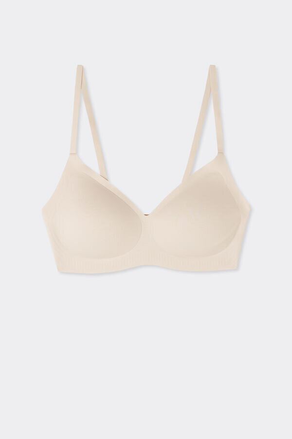 brassiere in soft microfiber, seamless for an invisible effect underneath clothing. features a v-neck and the ability to crisscross the straps in back. for a greater volume effect insert the accompanying demi-lune padding inside the cups. comfortable and cozy, it supports the bust without any constriction.