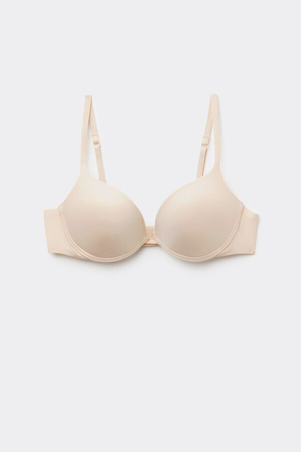 simona super push-up bra with underwire and molded, graduated, very padded cups. it is made of soft and light ultralight microfiber with internal soft-touch effect cups. plunging neckline and very low center of the bust. underband lined in microfiber. the microfiber lined elastic straps are adjustable in back. design that lifts the bust providing a breathtaking décolleté with a one-size-larger effect.