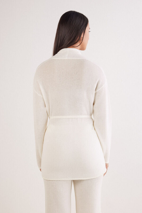 cardigan in pure knit cashmere with a soft texture and comfortable and cozy fit. very versatile, it may be worn in various ways thanks to the belt. it may be used also as a warm, cozy robe.