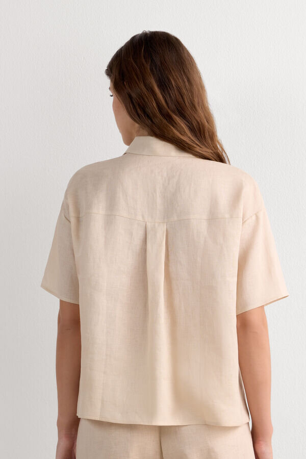 short sleeve shirt in pure linen that can be used either as a top with jeans or as a comfortable pajama top.