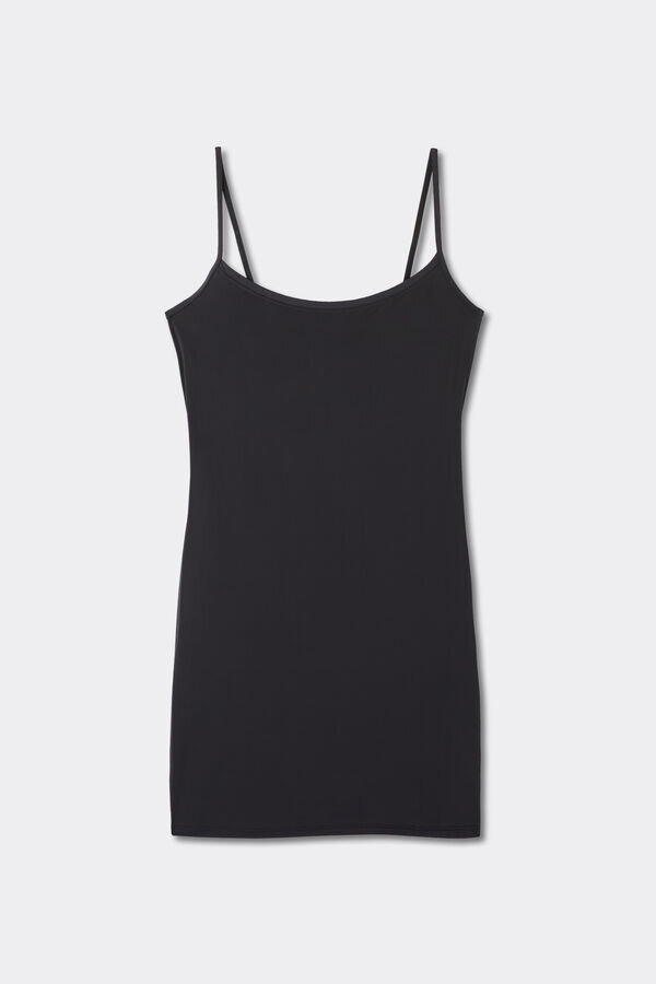ultralight microfiber slip with thin straps. ideal to wear under dresses and sheer or knit skirts. close fit.