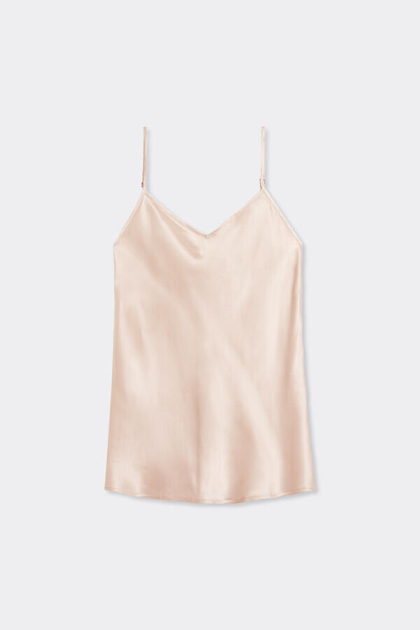 top in silk satin with front and back v-neckline. adjustable thin straps.