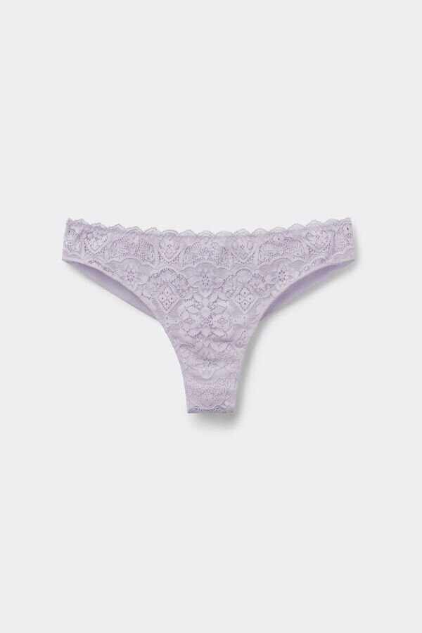 discover intimissimi’s lace and microfiber brazilian briefs, featuring stretch lace with a geometric design, romantic frills, and a soft double-layered microfiber back